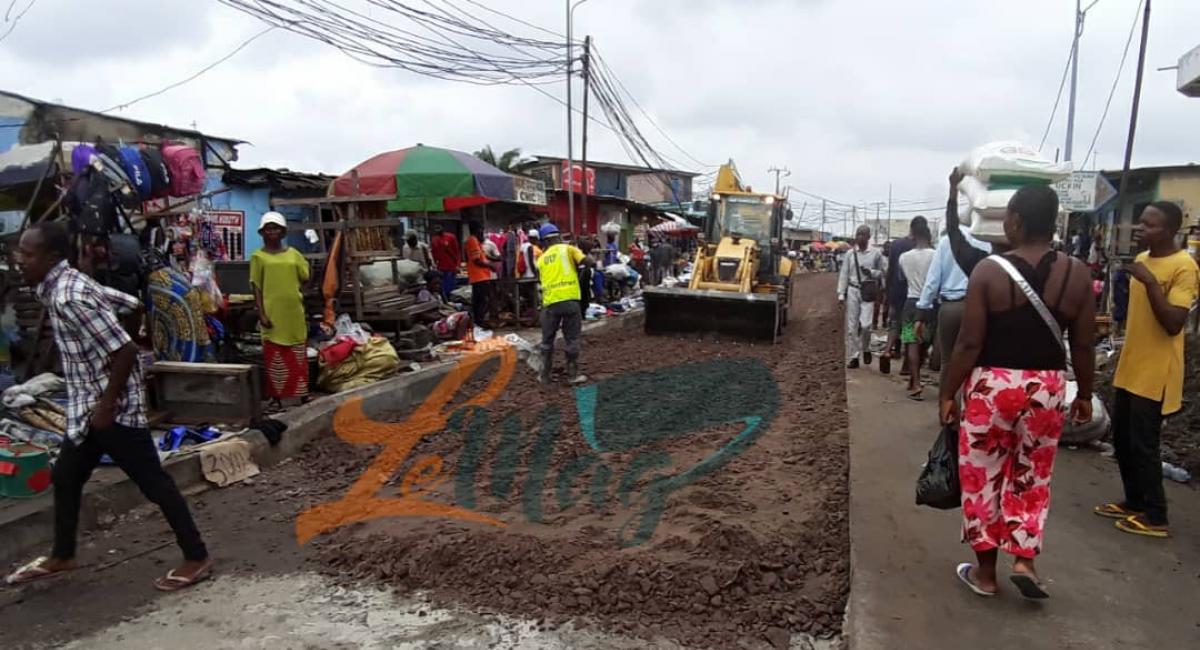 La route est bloquée, quelques panneaux signalent "Déviation travaux”, et cela pousse des centaines des passants à marcher à pied plus loin que d’habitude pour embarquer dans les taxi-bus ou taxi à destination de l’UPN, Delvaux… et à l’opposé pour se rendre au centre-ville ou Kintambo Magasin, car l'arrêt de bus est envahi par les engins de la société de construction.