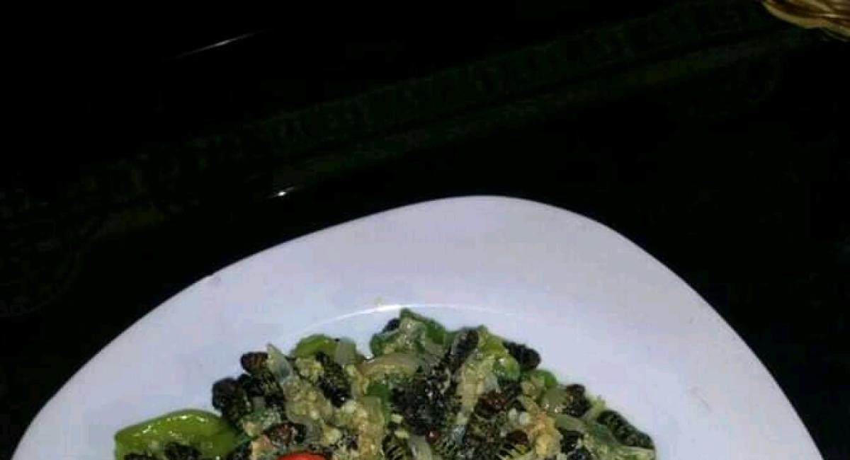 La recette de chenille fraîche et poisson salé est une recette bio et facile à préparer. Pour bien préparer cette recette voici les ingrédients proposés par Francine Makuku de Sekele ya Makusa:
