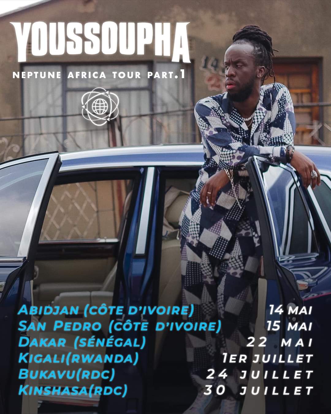 Ce samedi 14 mai, le rappeur congolais Youssoupha débutera sa tournée africaine intitulée Neptune Africa part 1. Il l’a annoncé le mardi 10 mai 2022 sur ses réseaux sociaux. La première date sera dans la capitale ivoirienne.